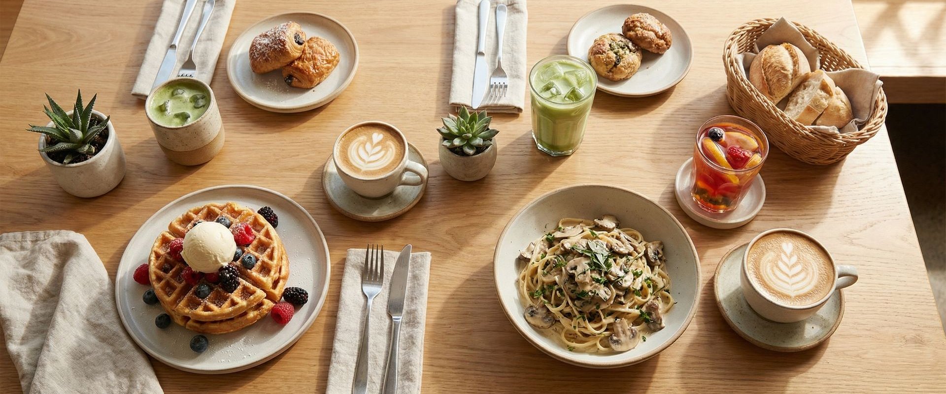 From aromatic specialty coffee to our legendary waffles, every item is made fresh with care.